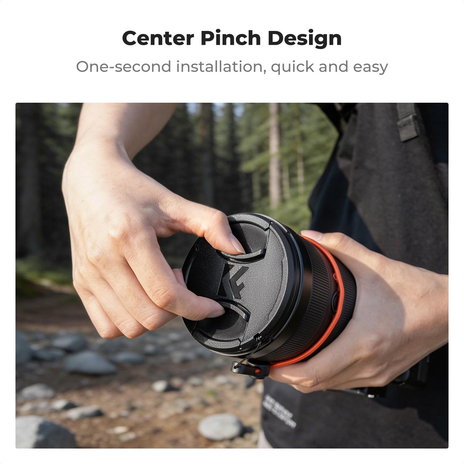 - ăNon-spring Structure Center-PinchăThe K&F Concept lens cap is made of ABS environmentally friendly material, sturdy and durable to protect the lens, the non-spring structure center-pinch design avoids aging, malfunction, and other problems that sping structure causes. The lens cap fits the lens well fast, and accurately enough, and is easy to attach and remove.