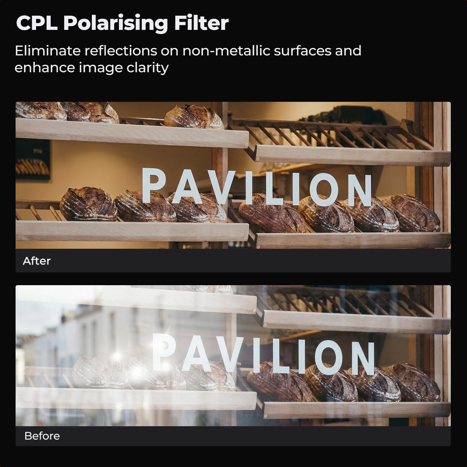 - Vivid Images: Eliminate unwanted reflections from non-metallic surfaces like water and glass, and boost color and contrast for captivating photos. Capture stunning images with reduced reflections and enhanced colors.