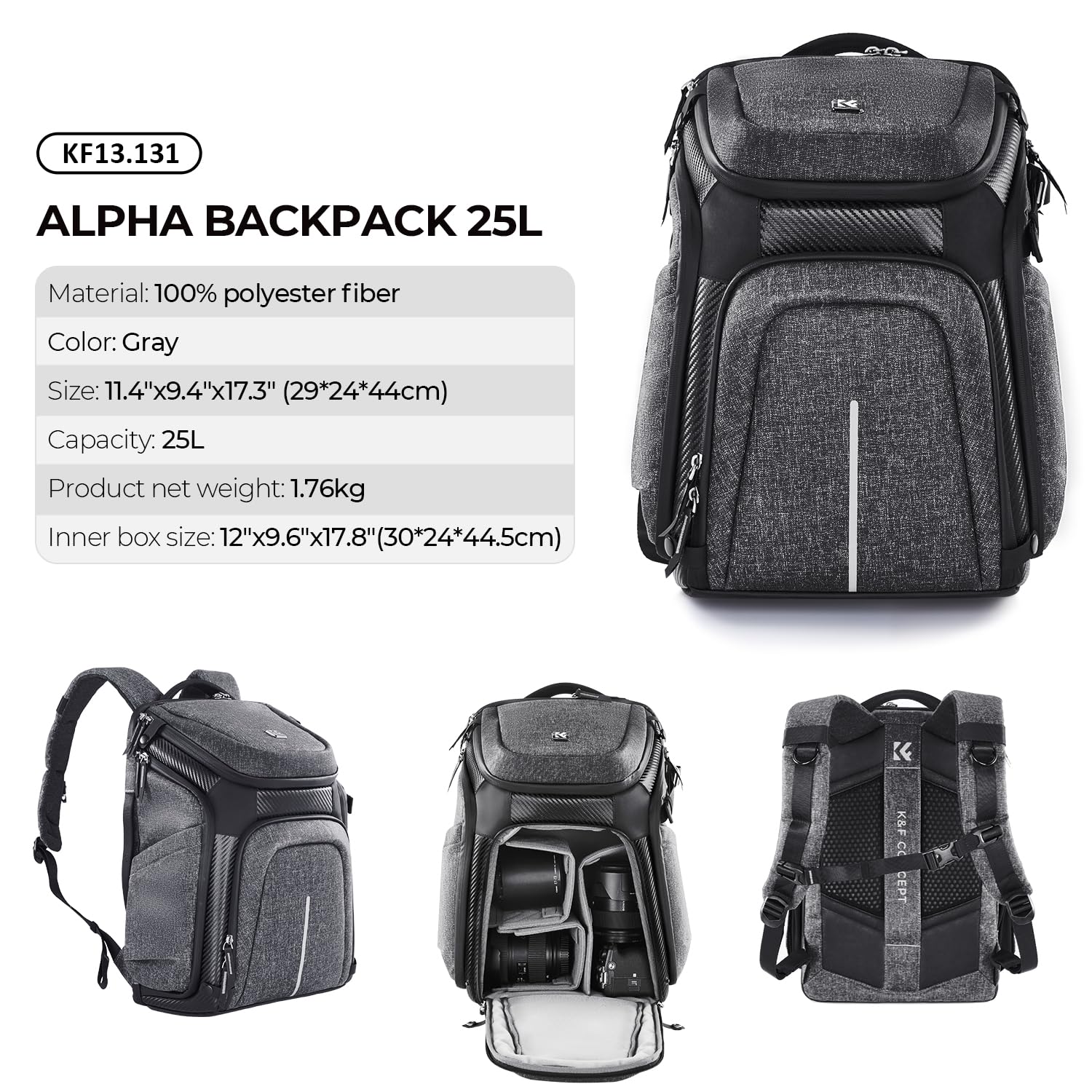 K&F CONCEPT DSLR/SLR Photography Waterproof Camera Bag with 15.6 inch Laptop Compartment Tripod Holder Raincover Camera Backpack