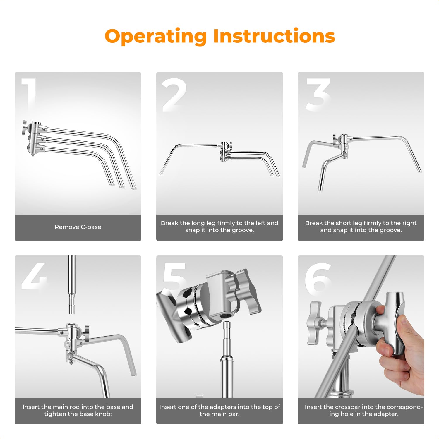 - ăFoldable C-Shape BaseăThe C-shape base with non-slip pads allows you to use sandbags to increase the stability of the stand, and it can be folded for easy storage and carrying.